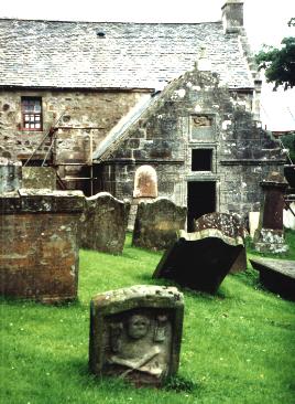 The kirkyard, containing the earthly remains of numerous Stevensons, surrounds the church. There are very old graves to the right and left of the church, and more current ones in the